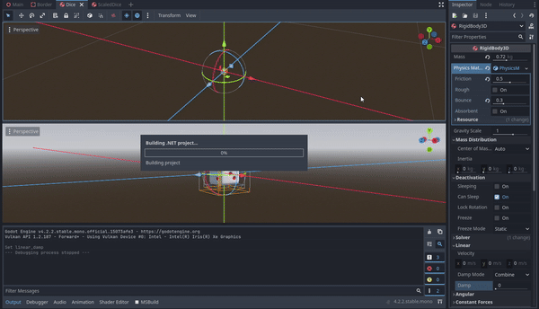 I write the code using C Sharp. Oh, for Physic Engine itself I am using Jolt engine, to save me some headaches…using the default one will make my dice acting wild…I am not sure why, maybe because it is too small 🤔…